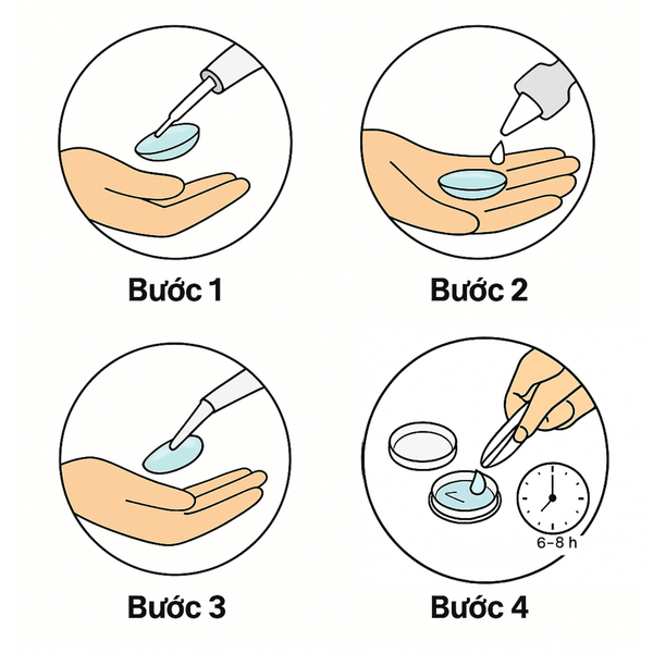 Ngâm lens ít nhất từ sáu đến tám tiếng hoặc theo hướng dẫn của nhà sản xuất trước khi đeo lần đầu