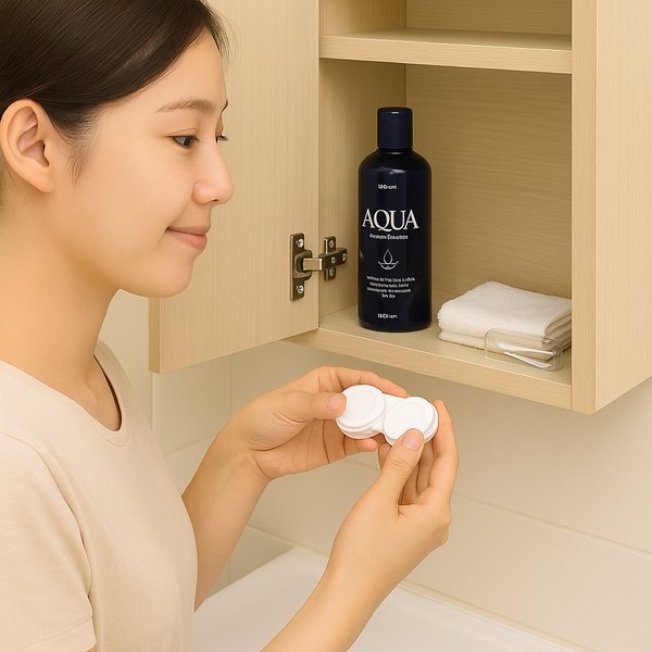 Ngâm lens trong hộp chứa sạch và khô, đổ đầy dung dịch mới mỗi ngày – tuyệt đối không tái sử dụng dung dịch cũ.