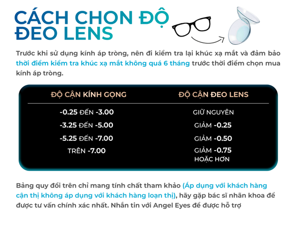 Độ khúc xạ: Người bị cận, viễn hay loạn cần xác định đúng độ để chọn lens phù hợp.