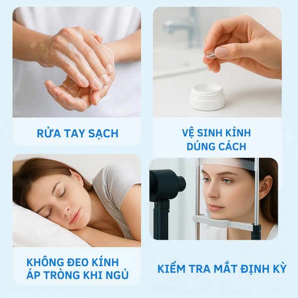 Vệ Sinh Kính Đúng Cách: Dùng dung dịch chuyên dụng để rửa và ngâm kính. Không dùng nước máy hay nước muối tự pha.
