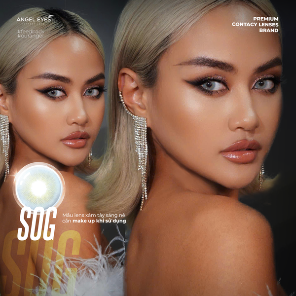 | SOG (xám xanh Silicone Hydrogel) | Silicone Hydrogel | 14.2mm | 180.000đ | Makeup daily, makeup nhẹ nhàng tone lạnh |