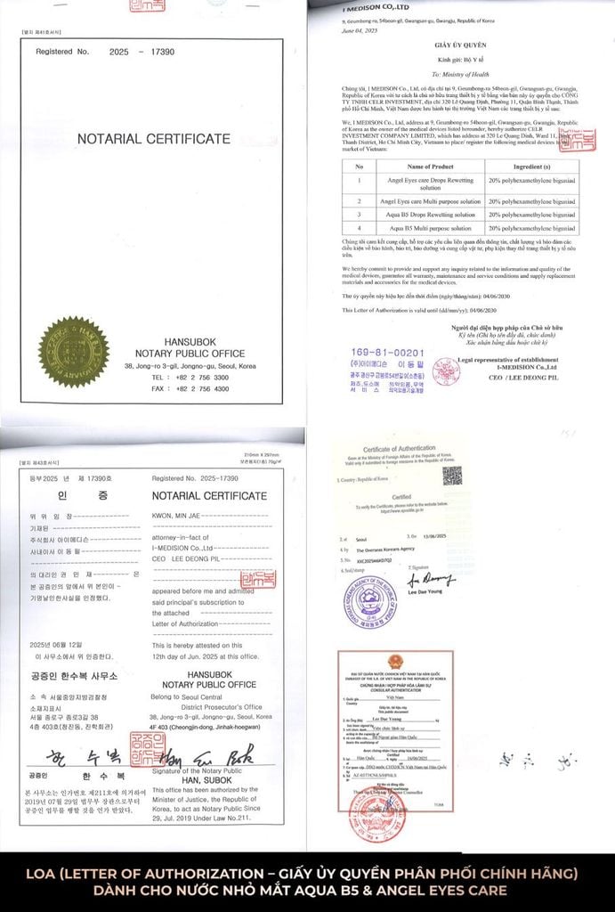 Xác nhận Angel Eyes là đơn vị phân phối được ủy quyền hợp pháp từ nhà sản xuất tại Hàn Quốc.