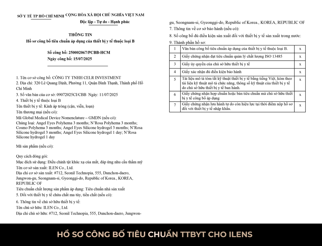 Trên đây là văn bản công bố đủ điều kiện mua bán trang thiết bị y tế loại B,C,D của Angel Eyes.
