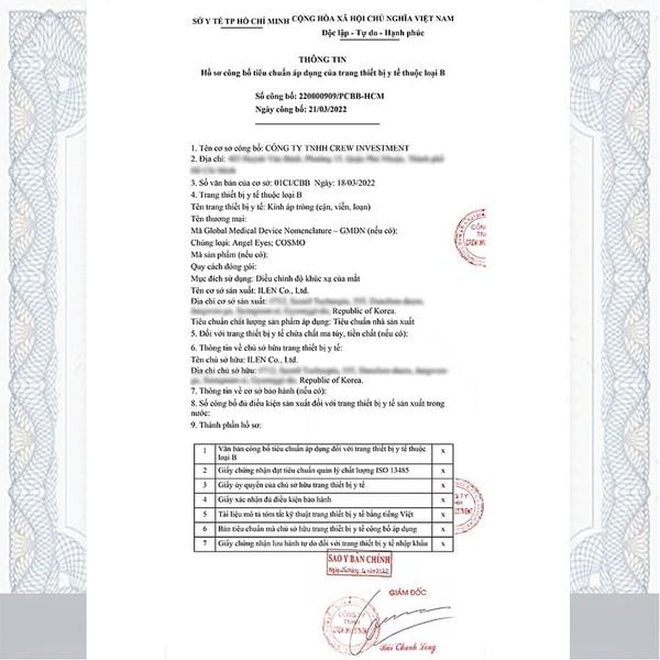 - Owning high-quality contact lenses with clear origin and certified by the Ministry of Health of Vietnam.